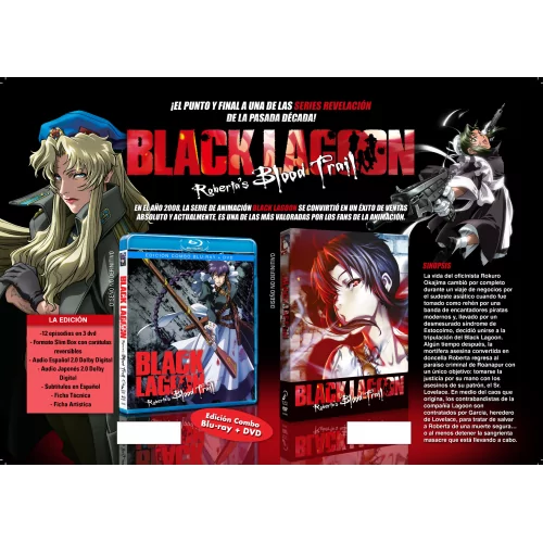Sinopsis: La vida del oficinista Rokuro Okajima cambió por completo durante un viaje de negocios por el sudeste asiático cuando fue tomado como rehén por una banda de encantadores piratas modernos y, llevado por un desmesurado síndrome de Estocolmo, decidió unirse a la tripulación del Black Lagoon. Algún tiempo después, la mortífera asesina convertida en doncella Roberta regresa al paraíso criminal de Roanapur con un único objetivo: tomarse la justicia por su mano con los asesinos de su patrón, el Sr. Lovelace. En medio del caos que origina, los contrabandistas de la compañía Lagoon son contratados por Garcia, heredero de Lovelace, para tratar de salvar a Roberta de una muerte segura… o al menos detener la sangrienta masacre que está llevando a cabo.
