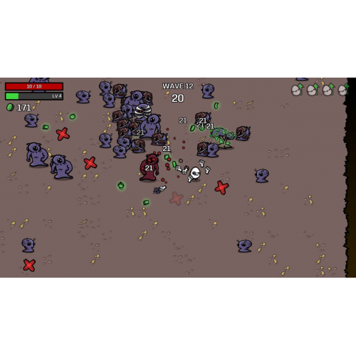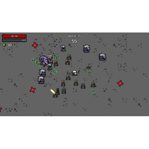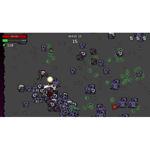 • Recolecta materiales para ganar experiencia y obtener objetos de la tienda entre oleadas de enemigos