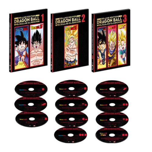 3 cajas de cartoné que incluyen los 11 discos Bluray que contienen las películas.