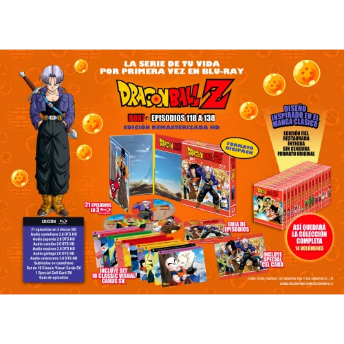 ¡Ya está aquí el Box 3! Revive los episodios del 41 al 60 de Dragon Ball Z por primera vez en Blu-ray en una preciosa edición inspirada en la mítica serie roja que incluye diez visual cards y una reproducción de un cell original de la serie.