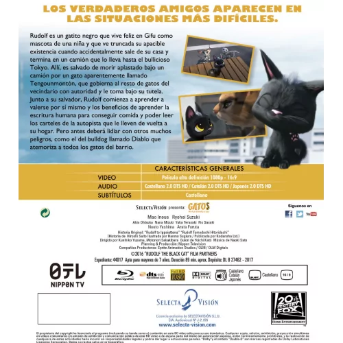 Sinopsis: Rudolf es un gatito negro que vive feliz en Gifu como mascota de una niña y que ve truncada su apacible existencia cuando accidentalmente sale de su casa y termina en un camión que lo lleva hasta el bullicioso Tokyo. Allí, es salvado de morir aplastado bajo un camión por un gato aparentemente llamado Tengounmontón, que gobierna al resto de gatos del vecindario con autoridad y le toma bajo su tutela. Junto a su salvador, Rudolf comienza a aprender a valerse por sí mismo y los beneficios de aprender la escritura humana para conseguir comida y poder leer los carteles de la autopista que le lleven de vuelta a su hogar. Pero antes deberá lidiar con otros muchos peligros, como el del bulldog llamado Diablo que atemoriza a todos los gatos del barrio.
