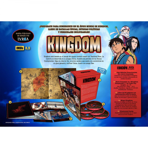 Kingdom está basada en el manga del mismo nombre creado por Yasuhisa Hara. La historia se desarrolla en la antigua China, durante los periodos de los Reinos Combatientes. Sigue la vida de Xin, un joven esclavo que sueña con convertirse en un gran general y unificar China junto a su amigo Piao.