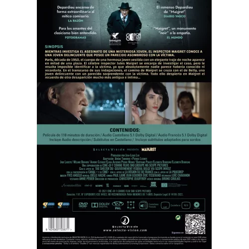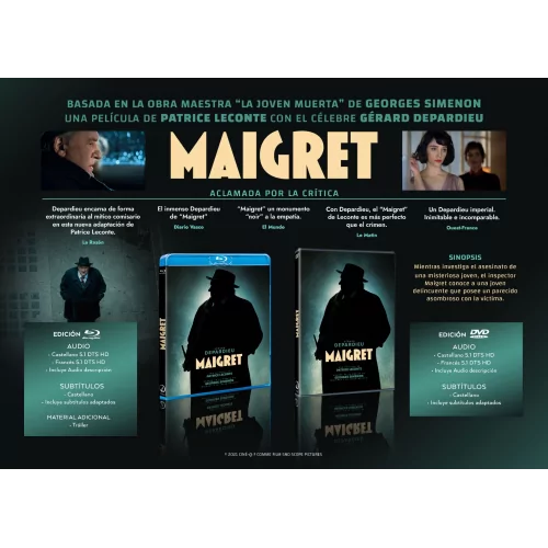 Sinopsis Maigret: Mientras investiga el asesinato de una misteriosa joven, el inspector Maigret conoce a una joven delincuente que posee un parecido asombroso con la víctima. Paris, década de 1950, el cuerpo de una hermosa joven vestida con un elegante traje de noche aparece en mitad de una plaza. El célebre inspector Jules Maigret se encarga de investigar el caso, pero le resulta imposible identificar a la víctima, ya que absolutamente nadie parece haberla conocido ni recordarla. En el transcurso de sus indagaciones, el camino de Maigret se cruza con el de Betty, una joven delincuente con un parecido sorprendente con la víctima. Todo ello despierta en Maigret el recuerdo de otra desaparición mucho más antigua e íntima...