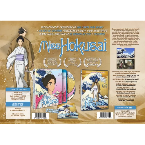 Sinopsis: Keiichi Hara vuelve a encandilarnos con esta adaptación del manga de culto de Hinako Sugiura, un precioso relato en torno a O-Ei, la hija del maestro pintor Hokusai. El director de la exquisita Colorful ha firmado el retrato de una familia y de una época, la de la ciudad de Edo de principios del siglo XIX. Además, cumple con creces un reto mayúsculo: convertir en imágenes animadas los cuadros del autor de La gran ola de Kanagawa.