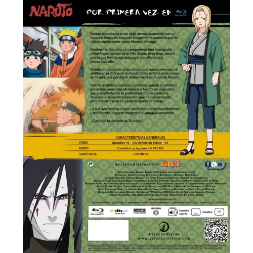 Llega el box 6 de Naruto con los episodios 126 al 250 en Bluray. El enfrentamiento con Sasuke parece tornarse cada vez más inevitable y el maestro Jiraiya decide llevar a Naruto y Sakura a una misión de clase Super S, sin saber que se adentrarán en la boca del lobo… Revive las aventuras del aprendiz de ninja más famoso de todos los tiempos, por fin en una colección en Bluray.