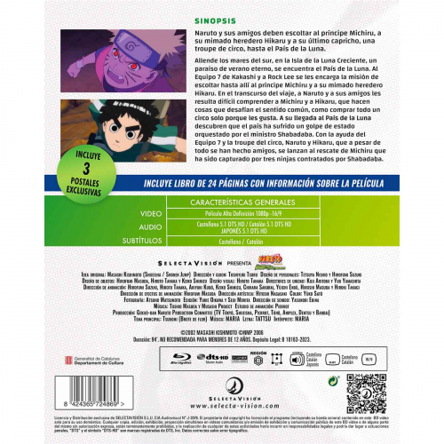 Naruto y sus amigos deben escoltar al príncipe Michiru, a su mimado heredero Hikaru y a su último capricho, una troupe de circo, hasta el País de la Luna.