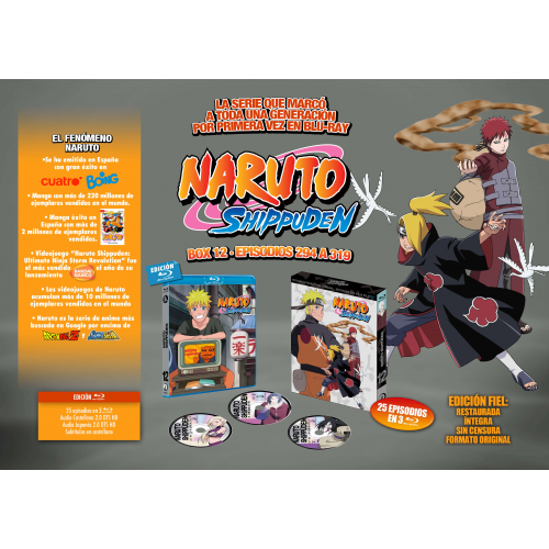 Llega un nuevo box de Naruto Shippuden con los episodios 112 al 137. Disfruta por primera vez en formato físico de una de las series más relevantes del siglo XXI, en una edición íntegra y sin censura, elige entre el doblaje clásico y un nuevo doblaje preparado para la ocasión, y sigue disfrutando de las aventuras del ninja más famoso del mundo, por primera vez en DVD y Bluray.