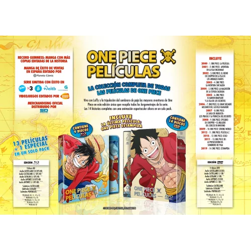 Vive con Luffy y la tripulación del sombrero de paja las mayores aventuras de One Piece en esta edición única que recopila todos los largometrajes de la serie. ¡Las 14 historias completas con una animación espectacular ahora en un solo pack!