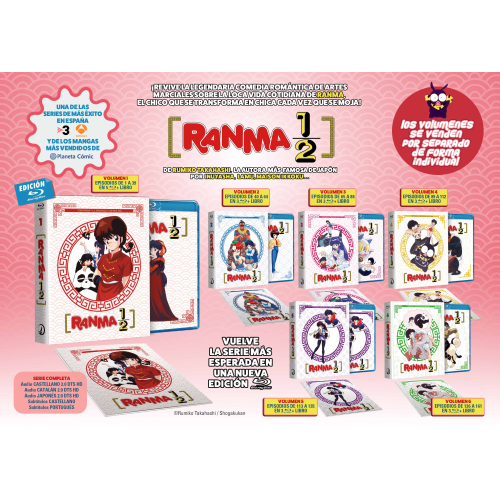 ¡Revive la legendaria comedia romántica de artes marciales sobre la loca vida cotidiana de Ranma, el chico que se transforma en chica cada vez que se moja! Una colección de 6 volúmenes que te enamorará.