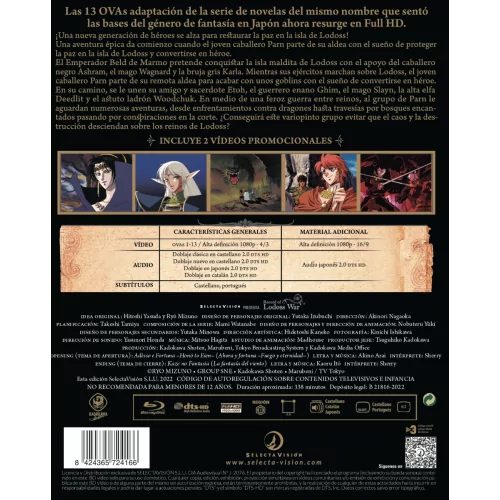 ¡“El señor de los anillos” del anime! ¡Una nueva generación de héroes se alza para restaurar la paz en la isla de Lodoss! Una aventura épica da comienzo cuando el joven caballero Parn parte de su aldea con el sueño de proteger la paz en la isla de Lodoss y convertirse en héroe.
