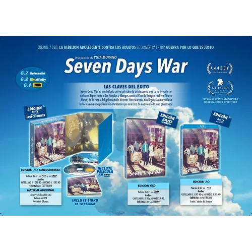 Sinopsis: Cuando Mamoru, Aya y sus amigos deciden huir de casa durante siete días, su pequeña rebelión acaba convirtiéndose en una guerra abierta contra los adultos. Mamoru Suzuhara es un introvertido estudiante de instituto que se pasa el día leyendo libros de historia y estrategia militar. Tras enterarse de que la chica que le gusta, Aya Chiyono, se resiste a mudarse con su familia a Tokio, decide reunir el valor necesario para pedirle que se fugue con él. Acompañados por cuatro amigos, deciden ocultarse de los adultos en una fábrica de carbón abandonada. Pero tras el primer día de diversión, llegan a la sorprendente conclusión de que no están solos en la fábrica y conocen a Malet, una niña tailandesa que huye de la oficina de inmigración. Cuando a la mañana siguiente los agentes de la oficina de inmigración irrumpen en el lugar, Mamoru y sus amigos los repelen convirtiendo su pequeña rebelión en una guerra abierta contra los adultos.