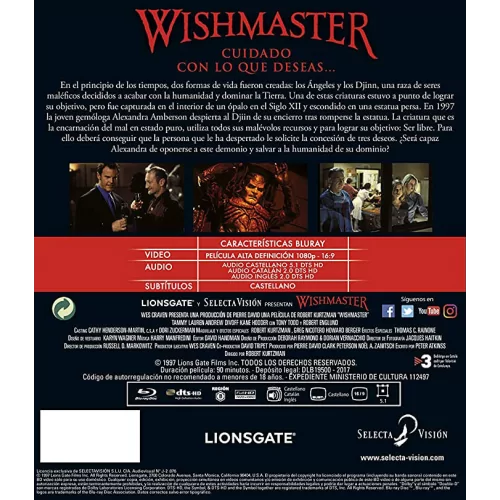 Sinopsis: Hace tiempo, cuando Dios creó los cielos y la Tierra, también creó un lugar lleno de criaturas demoníacas a las que llamó Djinn. Ahora, los Djinn han logrado escapar de sus confines en respuesta a los deseos de un humano. Torciendo sus sueños horrorosamente, el líder de los Djinn deja un sendero de sangre y asesinato mientras espera su oportunidad de entrar en nuestro mundo.. una oportunidad que sólo llegará si quien los ha liberado utiliza sus tres deseos.