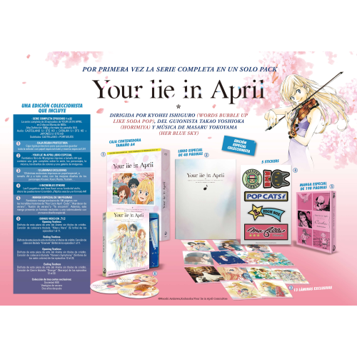 Fantástico manga exclusivo de 198 páginas con las increíbles historias de "Your Lie in April • Coda" "Atardecer de verano", "Ilusión de verano"y "Te encontré". Además, este manga presenta un formato exclusivo y una sobrecubierta con un nuevo diseño especial.